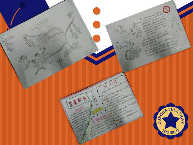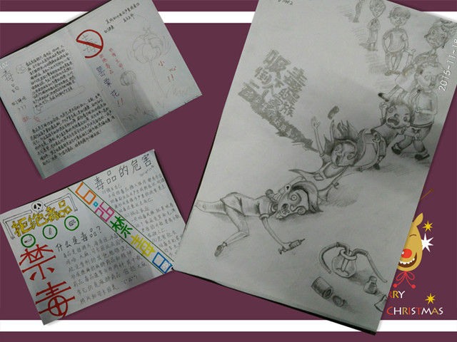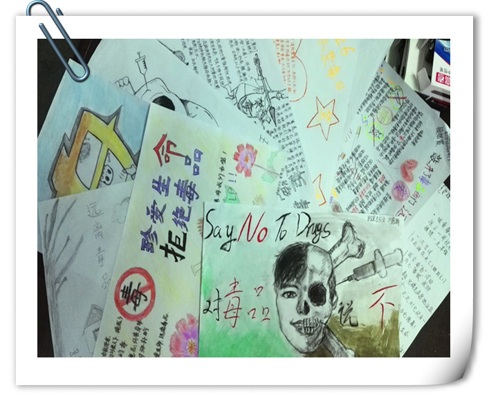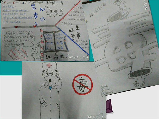 按照活动要求,各辅导员积极安排我院学生关于禁毒的第二课堂活动。为保证活动效果,各种活动辅导员班主任都是亲自部署,亲自参加。15级各专业班级开展了禁毒主题班会,会中再次强调了毒品的危害,倡导大家“珍爱生命,拒绝毒品”。并通过知识问答等多种形式,将班会开的丰富多彩。会后,安排同学们写出心得体会。13、14级各专业班级开展了禁毒手抄报比赛,同学们视毒品为恶魔,将毒品的危害用绘画的形式展现出来,给同学们再次敲响了警钟。