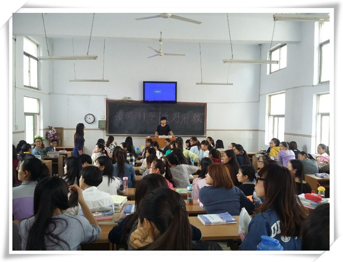 网络通讯发达的今天,防备意识较差的大学生成为邪教受害者的高发人群。为了维护校园稳定,抵制邪教组织对社会的危害,提高大学生的自我保护意识与反邪教意识,使同学们能够树立正确的科学价值观,2015年10月14日下午,医学院建设西路校区14级全体同学在辅导员的安排下,以班级为单位组织开展了“崇尚科学,反对邪教”的主题教育班会。