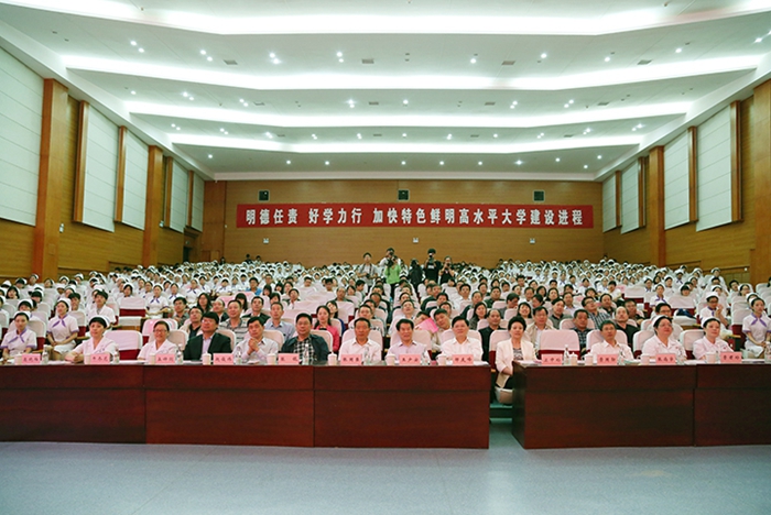 5月12日下午,学校在明德楼音乐厅隆重举行庆祝第104个国际护士节暨医学院首届护理本科生“授帽传光”仪式。校党政领导王少安、邹友峰、张国臣、卫中玲、张锟、景国勋、赵俊伟、张尚宇、孟钟剑出席仪式。学校各职能部门负责人、各学院党委书记、院长参加仪式,仪式由副校长景国勋主持。