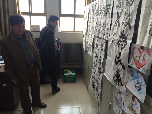 观看书法绘画作品展后,医学院韩冬风院长说,这次作品展集政治性、思想性、艺术性、观赏性于一体,体现了寓教于文、寓教于乐、寓教于美,必将对我院反腐倡廉建设起到重要的推动作用。