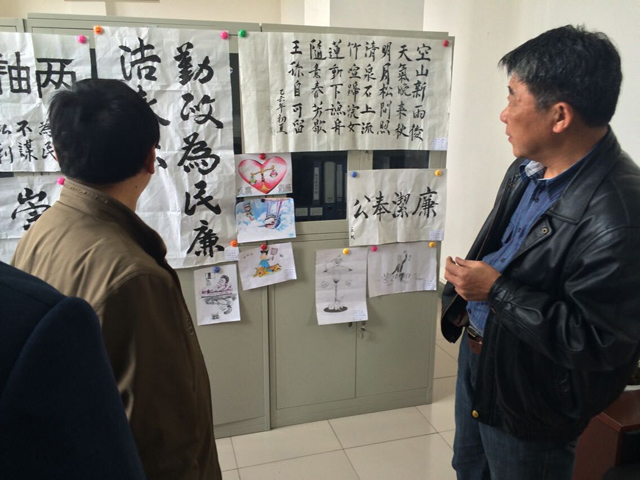 清风笔端起,廉字心中留。4月7日下午,按照学校《关于举办河南理工大学第六届廉洁书画作品展的通知》文件要求,为进一步加强学校廉洁文化建设,引导师生员工树立廉洁价值理念,在校园营造崇廉尚廉文化氛围,医学院在党政办公室举办了医学院廉政书法绘画作品展。展厅内来自学院师生的13幅书画作品,引起广大师生的极大兴趣,大家评头论足,不住的点头称赞。学院领导韩冬风、李培富、沈军生、时洋等和大家一起观看了作品展。