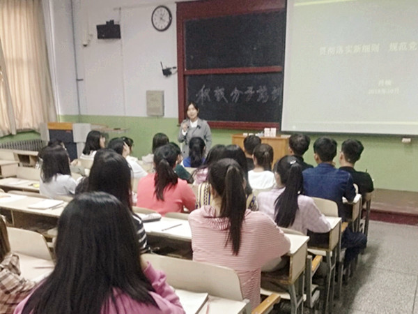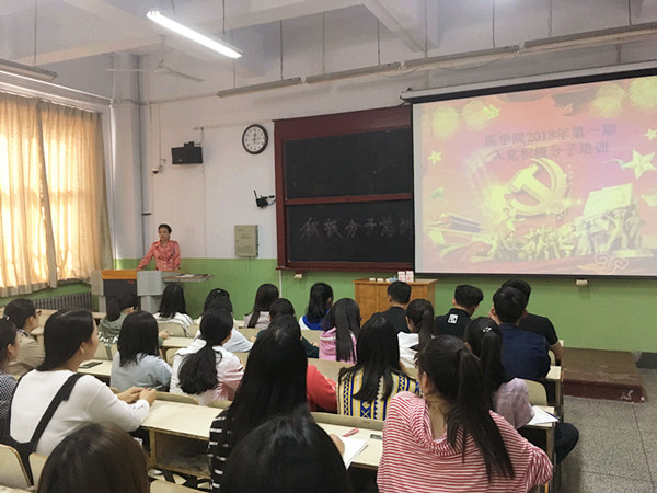 医学院2018年第二期入党积极分子培训班已于10月9日开班,在北校区2102教师对61名入党积极分子进行培训。