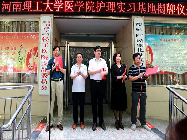 经过充分的前期调研和考察,医学院与焦作市解放区民生北社区服务中心最终达成了共建社区护理实习基地协议,并于5月29日上午,在民生北社区服务中心举行了“河南理工大学医学院护理实习基地”揭牌仪式,医学院党委书记余本胜,解放区人民政府副区长王大青,医学院副院长沈军生,以及医学院护理系主任和解放辖区13家社区卫生服务中心主任参加了揭牌仪式。