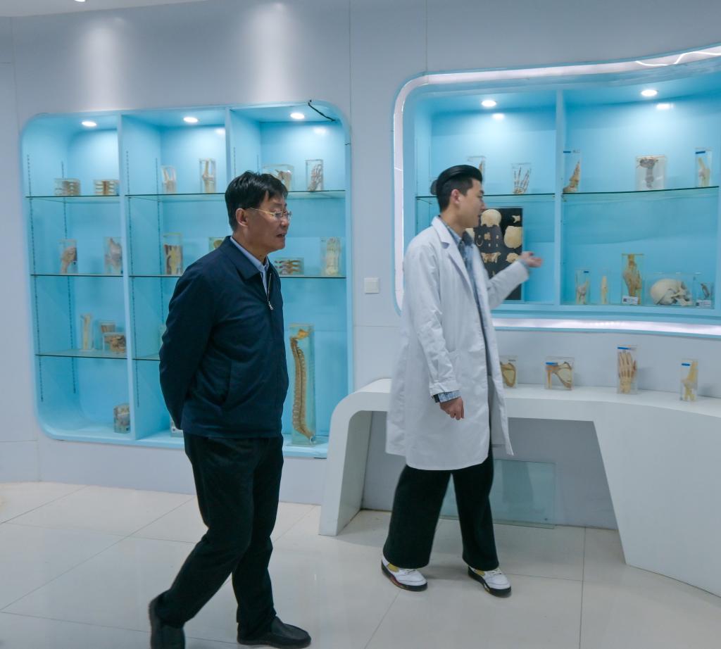 薛志杰一行还参观了医学实验中心、药学重点实验室和生命科学馆。焦作市卫健委、科技局、农业农村局参加考察。学校校长办公室、科技处、医学院等单位负责同志参加上述活动。