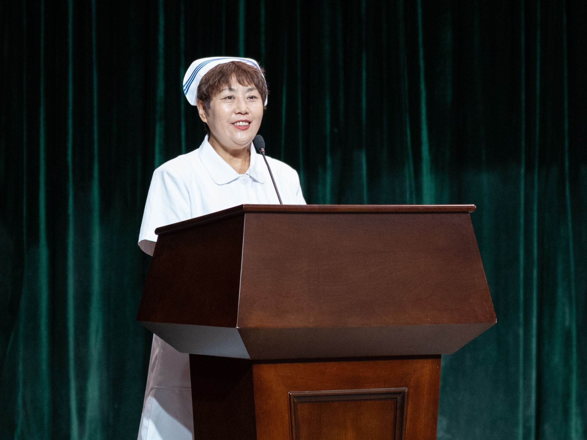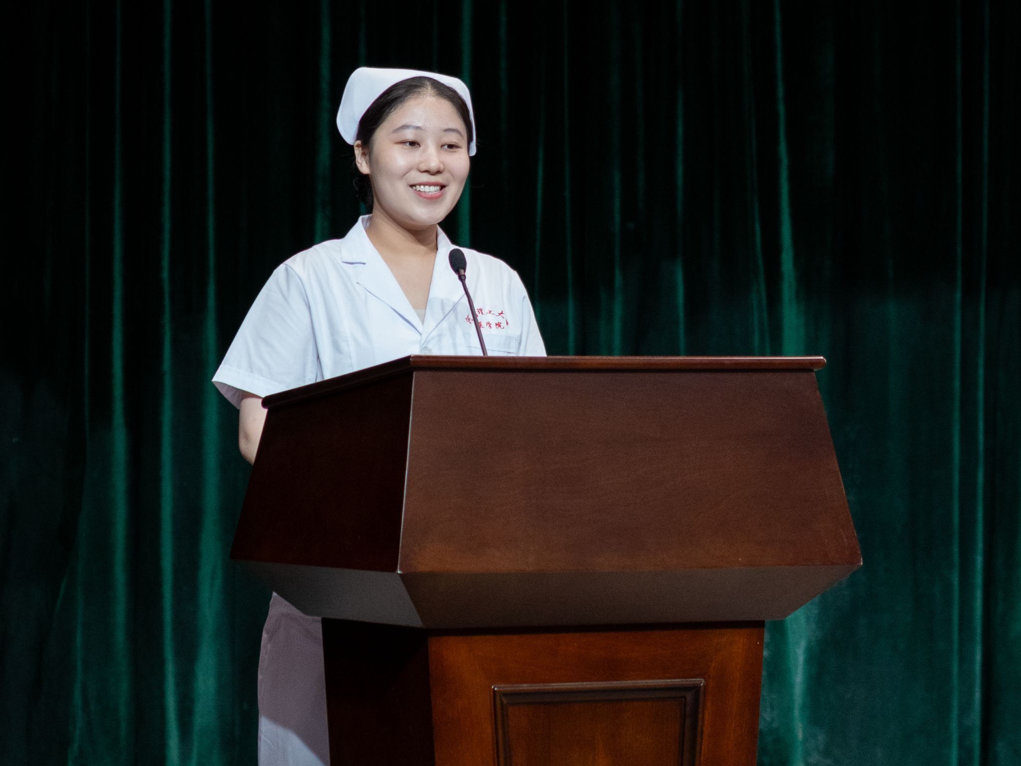 优秀学生代表仝祎冉在发言中回顾了自己的大学生活和成长历程,对老师和学校的培养表示了深深的感激。她鼓励学弟学妹们珍惜学习机会,勇于探索,不断自我提升,以实现个人价值和职业发展。希望大家千帆阅尽,归来仍是赤子!高晓梅教授代表护理前辈向全体护生表达了殷切的期望,希望她们能够以阳光的心态和深厚的爱意,成为患者心中最温暖的守护者。她相信,每一位护生都拥有无限的潜力,定能在护理领域取得辉煌的成就。
