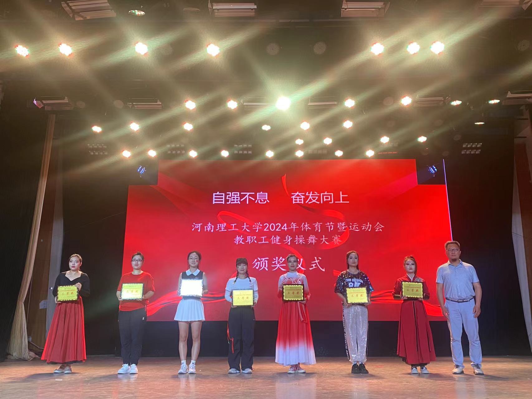 青春自信,活力闪耀,舞动飞扬,魅力绽放。5月25日晚上19点,河南理工大学2024年体育节暨运动会教职工健身操舞大赛在南校区小礼堂成功举办,医学院在十八个参赛队伍中脱颖而出,荣获教职工健身操舞大赛三等奖。