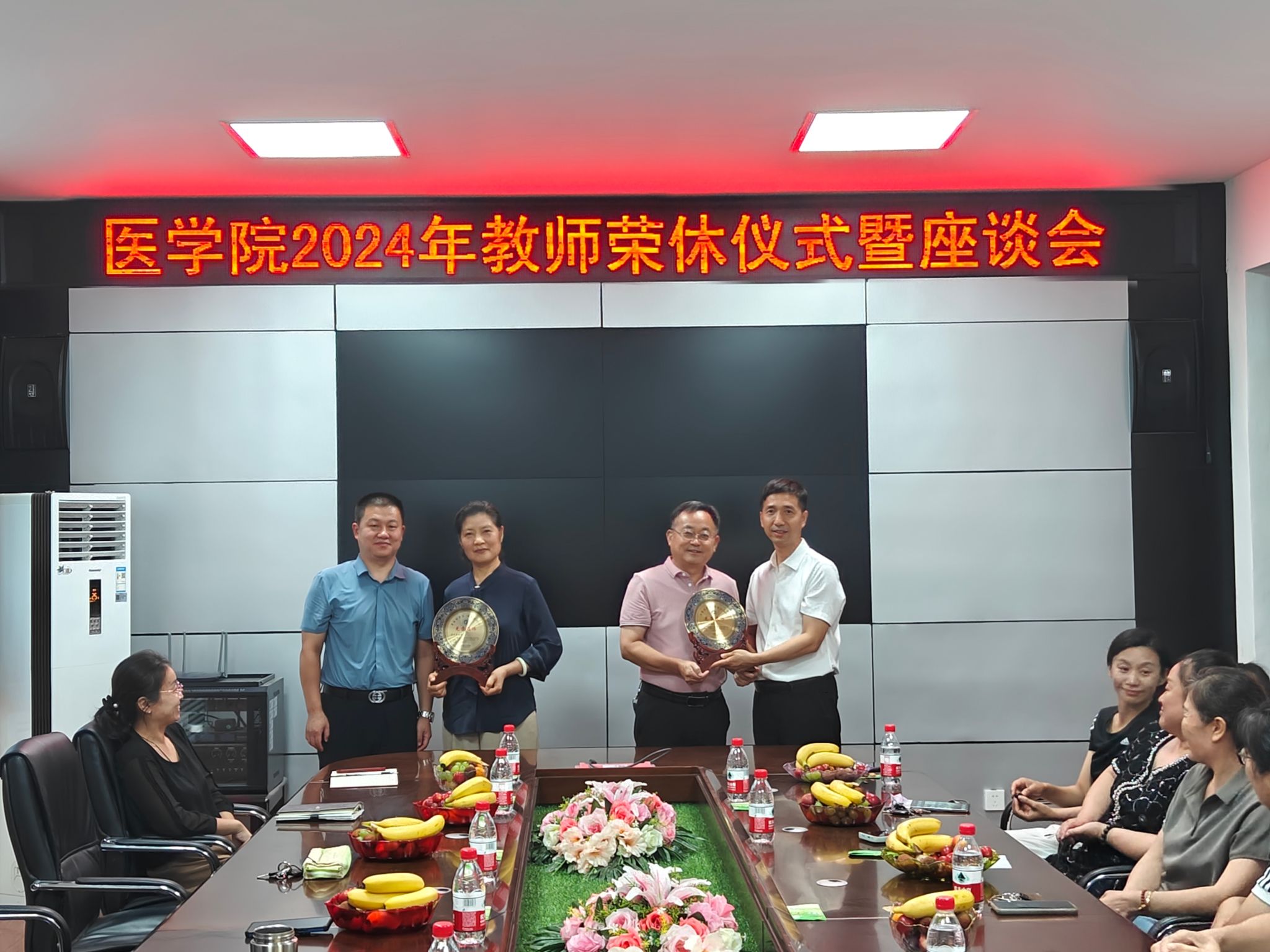杏林春暖映日辉,桂香满园续华章。7月2日下午4点,在医学院楼223会议室,一场温馨而庄重的医学院2024年度教职工荣休仪式及座谈会顺利举行。此次会议迎来了沈军生、曹连英两位资深教师的光荣退休时刻,学院领导班子、各科室、系部负责人及教师代表共襄盛举。此次仪式由医学院院长王振辉主持。