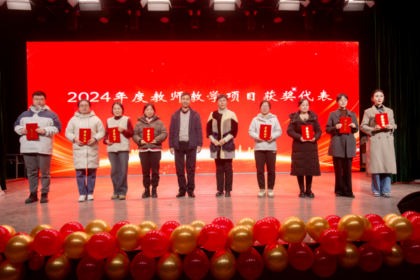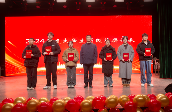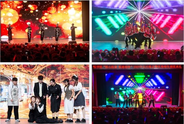 晚会中场表彰颁奖环节,学校和学院领导依次为2024年度国家奖学金获得者、大学生省级获奖代表、教师教学项目获奖代表、教师科研项目获奖代表和国家级教师教学科研项目获奖代表进行荣誉表彰。医学院教师用青春陪伴青春,以奉献诠释担当;医学院学子用青春谱写希望,以汗水浇灌梦想,他们的风采共同书写了医学院辉煌的篇章。最后,晚会在热闹欢腾的《相亲相爱》歌舞表演中圆满落幕。