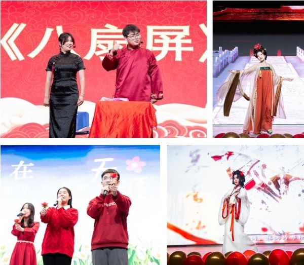 晚会在一曲动感的舞蹈《Shooting Star》中拉开帷幕,同学们的飒爽舞姿为晚会注入激情与活力。接着,各种形式的节目精彩纷呈,一次次将晚会气氛推向高潮,幽默话剧《尤利娅,别哭》、风趣相声《八扇屏》、诙谐小品《时间都去哪儿了》既轻松欢乐,又发人深省,让大家感受到了语言的魅力;歌曲《送你一朵小红花》通过婉转优美的嗓音、细腻的情感传递温暖和力量;舞蹈《what’s love》、歌曲《青春联唱踏新程》展现了青年学子对美好生活的向往和勇立时代潮流的决心;汉服走秀《一画千年》用中国传统服饰之美传递中华优秀传统文化的风韵;音乐情景剧《志愿小美满》和舞蹈《等你的回答》体现了学生团体甘于奉献、敢于担当的精神风貌;学生们尽显青春风采,教师们也展现自己独特的魅力,通过舞蹈《欢迎进入X0年代》融合不同年代流行元素,带领大家一起回顾那些难忘的青春记忆。
