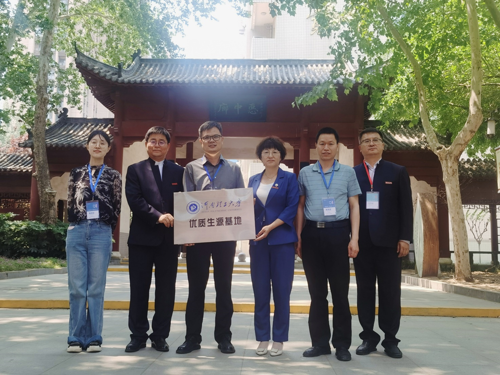 为深入贯彻落实学校“2024-2025学年生源高中建设行动”,提升生源质量,深化校际协同育人,近日,河南理工大学医学院副院长陈文波带队赴郑州第九中学开展招生宣传与“优质生源基地”共建活动。药学系主任孔继川、基础医学部主任李胜楠共同参与,并与该校师生展开深入交流。