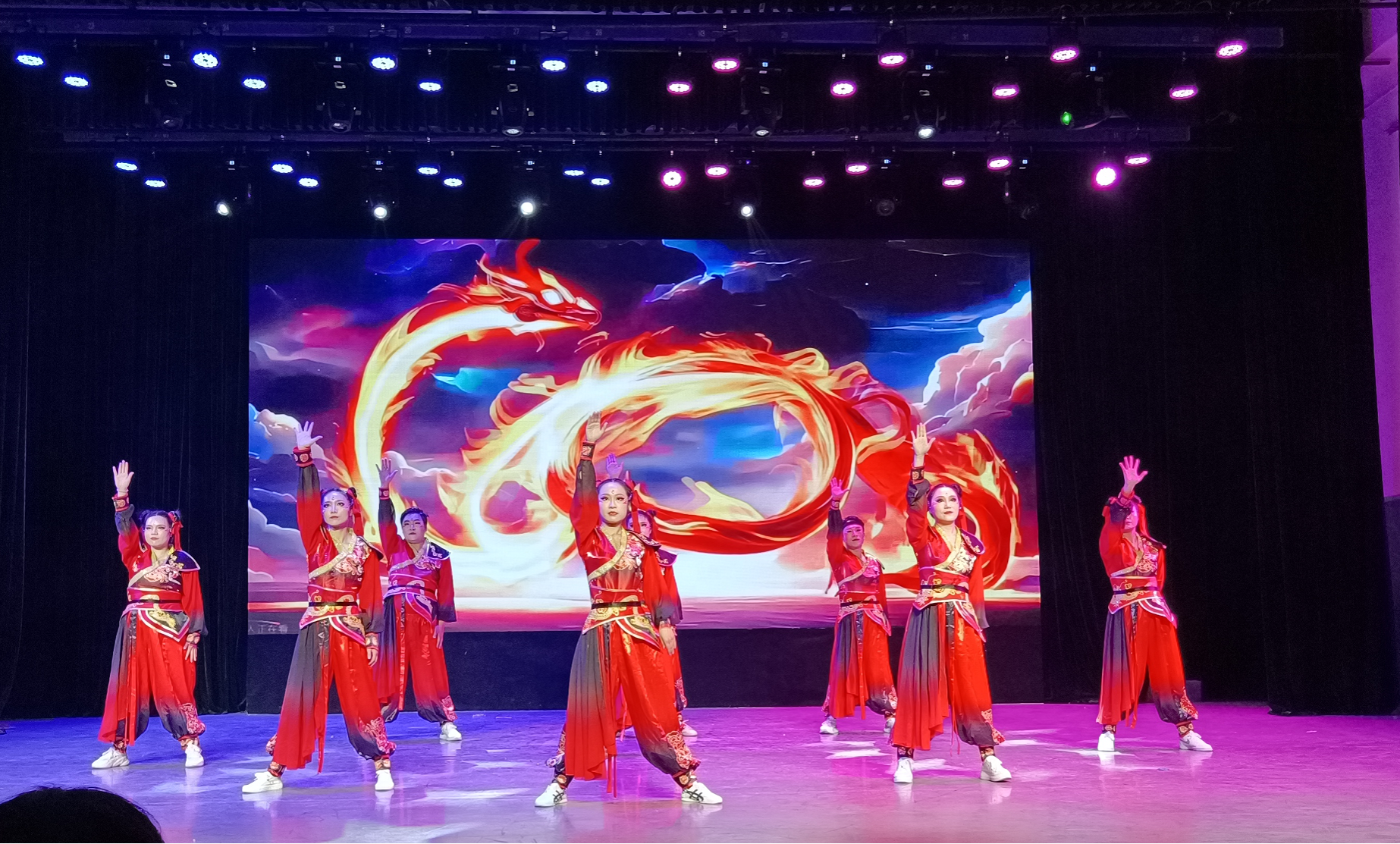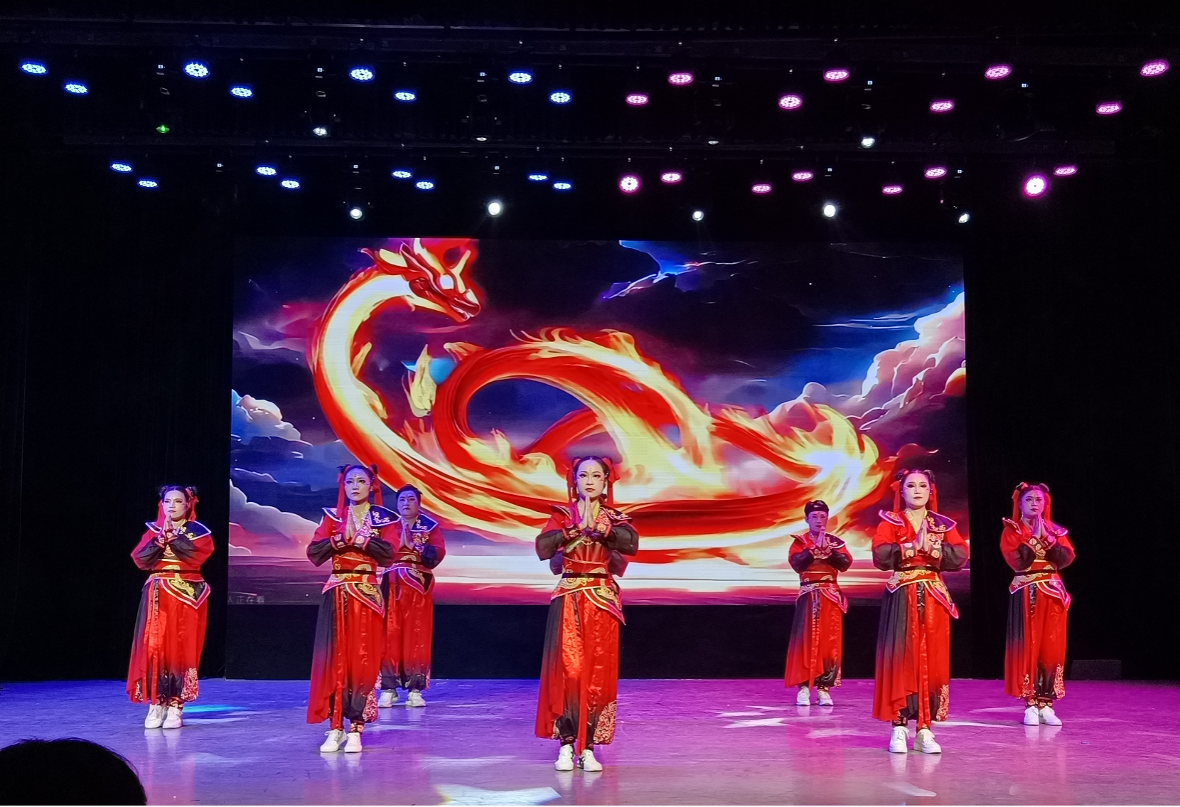 舞台上,我院教职工们身着精心设计的服装,手持红绫道具,在动感的音乐声中翩翩起舞。他们以整齐划一的动作、充满激情的表演,生动地诠释了哪吒不屈不挠、勇往直前的精神内涵。每一个跳跃、每一个转身都充满了力量与美感,将健身操舞的活力与电影主题的魅力完美融合,赢得了现场观众的阵阵掌声与喝彩。