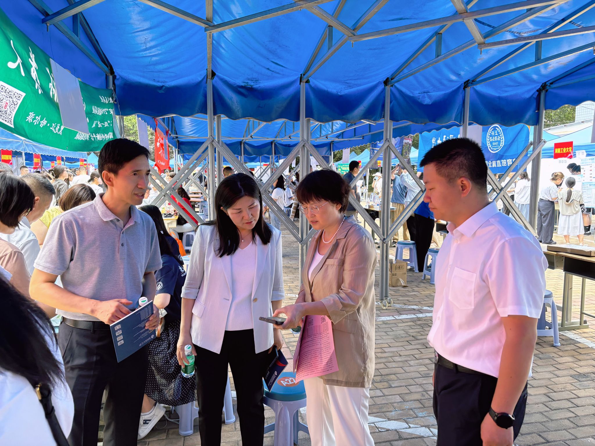 为帮助高三学生家长深入了解我校专业特色与人才培养模式,吸引更多优秀生源报考,进一步提升学校知名度与影响力。6月25日上午,丁亚红副校长带领医学院领导班子及招生宣传团队走进郑州市第九中学,在绿意盎然的户外广场举办了一场别开生面的招生宣传活动。活动吸引了近百名家长到场,现场熙熙攘攘,互动氛围热烈。