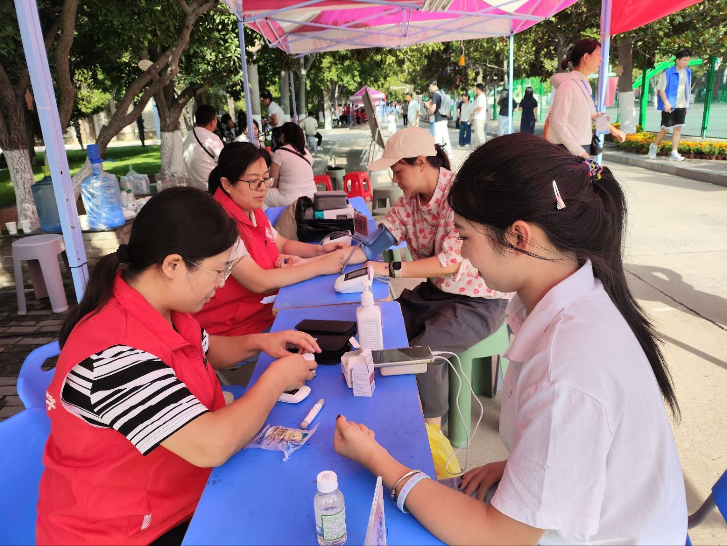 金秋送爽,丹桂飘香。9月6-7日,河南理工大学医学院迎来了2025级新生报到。从清晨到日暮,迎新现场热闹非凡,一支身着志愿者服装的队伍尤为引人注目。第一教工党支部党员化身为“健康守护者”,摆放血压计、血糖仪等专业设备,免费为新生和家长提供测血压、测血糖服务,并开展健康科普知识宣教,以专业和热情为迎新工作增添了一抹亮色。