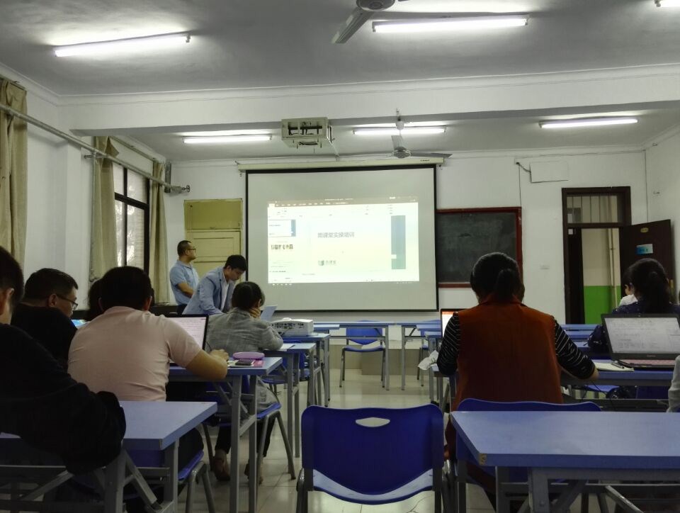 北京慕华信息科技有限公司的项目部武航经理首先对学堂在线简单做了介绍,之后通过老师们微信扫码进入雨课堂现场操作,使用雨课堂的新建班级、邀请学生加入班级等功能,并详细为老师们讲解雨课堂的各部分功能。雨课堂的所有的操作,不是在PowerPoint上就是在微信上,没有网站,也不需要平台,更不需要登录,只要在两个地方进行相关点击就可以。无论是年轻老师,还是用电脑比较慢的老师,都可以快速进入智慧教学当中。