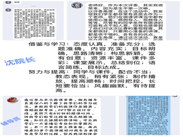 评委团成员有教学院长、系主任、教师代表、辅导员代表、13位学生代表,大家在完成正常的工作学习任务之余,抽时间认真观看提交的作品,紧扣评分标准认真打分。在结束评选后,担任评委的老师和同学们又交流了参加活动的心得,使得这次的比赛又具有了赛事以外的意义。