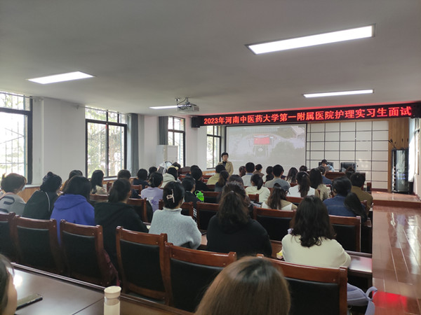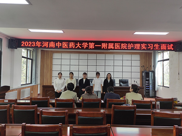精彩的选拔工作从一个精彩的医院宣传视频开始,将同学们的热情推向了高潮。宣讲结束后,面试分为三组进行。每组同学进入面试现场后先做自我介绍,在简单做了基本信息的介绍后,同学们重点讲述了自己的专业、特长和取得的荣誉。每组同学全部自我介绍完毕后,由面试老师对同学进行提问,主要对同学所述的特长和荣誉进行进一步询问,并询问学生临床上遇到问题如发生针刺伤、病人拒绝其护理等情况时会如何处置。同学们在自我介绍时展示了自己的自信和实力,非常认真地回答了老师的提问,得到了面试老师的鼓励和肯定。最终报名河南中医药大学第一附属医院的同学全部被贵院接收。