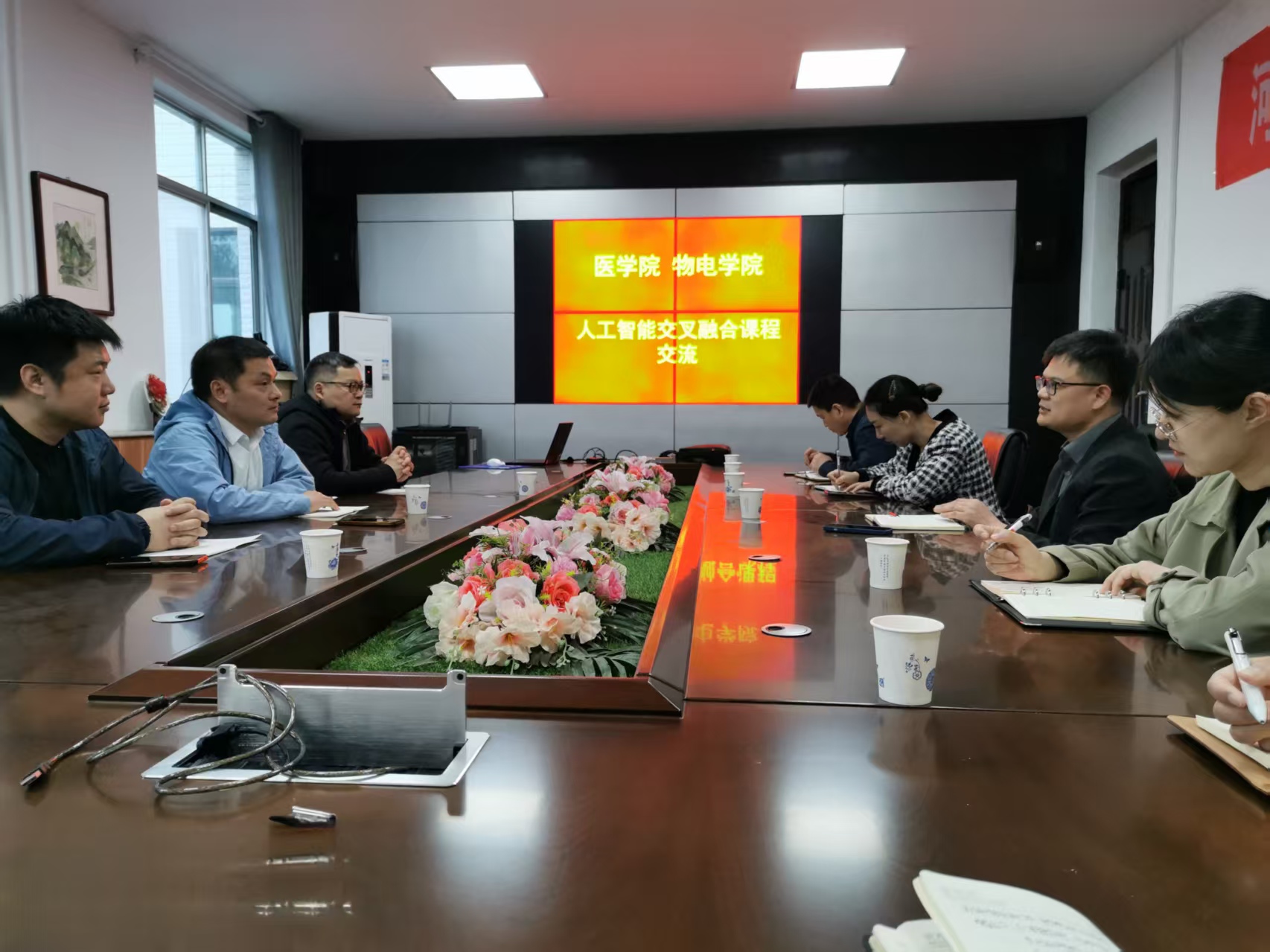交流会上,陈文波表示:“随着人工智能技术的飞速发展,其在医学领域的应用前景越来越广阔。我们希望通过这次交流会,能够加强医学院与物电学院的合作,共同探索人工智能在医学课程教育改革等方面的应用。”随后王新良主任介绍了腾讯元宝利用深度学习技术,能够准确快速地分析X光片,为医生提供初步诊断意见,大大提高了诊断效率。同时,大模型技术在医学领域的广泛应用也为学科交叉融合提供了新的思路。最后,双方在AI赋能药物设计和病理学诊断方面的教学案例方面达成了初步合作意向。此次交流会为医学院和物电学院的教师提供了一个宝贵的交流平台,今后两学院将继续深入交流和合作,共同推动人工智能+医学交叉融合课程建设。