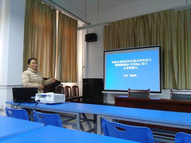 此次交流的题目是“突触传递释放的锌通过抑制蛋白磷酸酯酶2A导致tau蛋白过度磷酸化”。陈新岭老师首先介绍了该研究的目的、方法和结果。在交流过程中,老师们及时提出交流内容中有疑惑的地方,魏教授以其渊博的学术知识一一给予解惑。