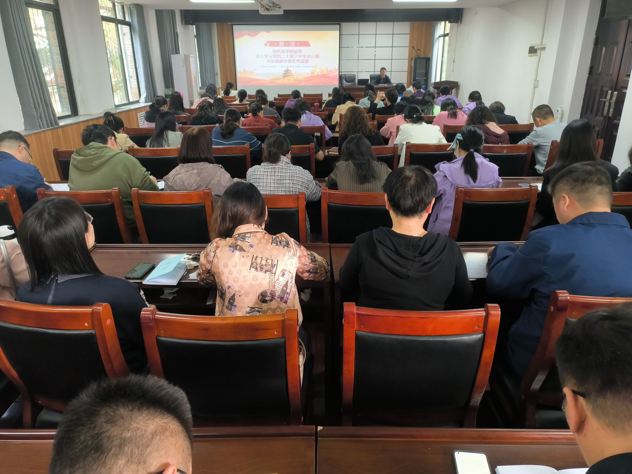 王院长还结合医学院的实际情况,就如何贯彻落实全会精神进行了深入讲解。他要求全体师生要深刻领会全会精神,把思想和行动统一到党中央的决策部署上来,以更加昂扬的斗志、更加务实的作风,为推动医学院事业高质量发展贡献力量。