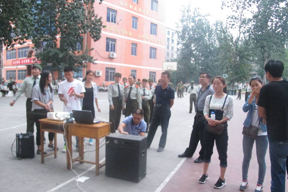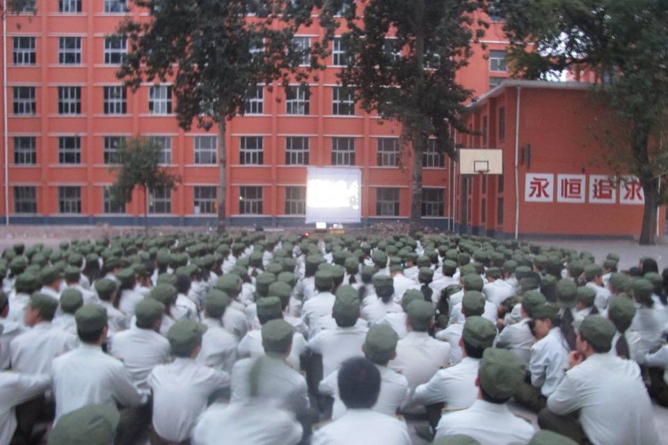 9月18日当晚,时逢反法西斯战争胜利70周年,河南理工大学医学院西区组织15级近500名军训新生观看电影《美丽人生》。