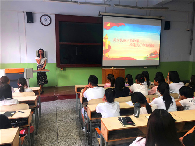 会议伊始,李老师向全体新生表示热烈欢迎,祝贺同学们从现在开始,就是理工人了。话音未落,会场掌声不断。李老师向同学们一一介绍了我院现任领导和班主任辅导员基本情况。随后,李老师就宗教的正确认识、军训期间工作安排及生活安全问题提出明确要求:新生军训期间,一切服从安排听指挥,不搞特殊化;安全无小事,事事要操心;遵守校规校纪,遇到问题随时联系辅导员班主任。班会继各班级辅导员助理逐一上台进行自我介绍后拉下了帷幕。