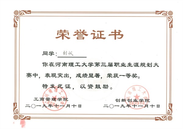 11月10日上午,由创新创业学院主办,工商管理学院科创中心承办的大学生职业生涯规划大赛决赛在创新创业大楼208室进行。我院护理本1901班封帆同学参赛。