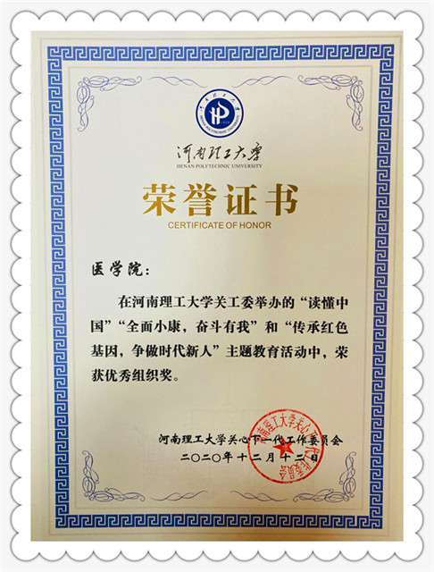 此次活动历时一个多月,经各年级专业初步筛选,13篇文章和7个微视频作品入围,由学院微信公众号发布,经同学们投票评选后,评定出学院一、二、三等奖和优秀奖,同时将优秀获奖作品向学校关工委报送。最终,宋贝贝同学的作品《读<红岩>有感》和舒志云、陈东同学的作品《红色故事·长征》获得校级三等奖,我院获优秀组织奖。本次活动的开展,激励广大青年学生勇做担当民族复兴大任的时代新人,为实现中华民族“两个一百年”伟大复兴的中国梦而不懈奋斗。