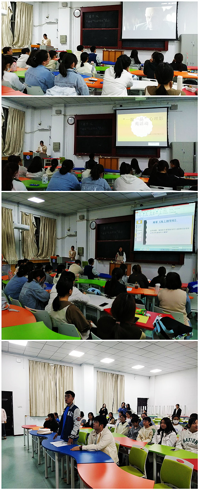 2021年10月11日晚上7点,我院首期心理影苑活动在2104教室顺利进行。活动由院学工办李金丽老师主持,20级和21级30余名学生参加。