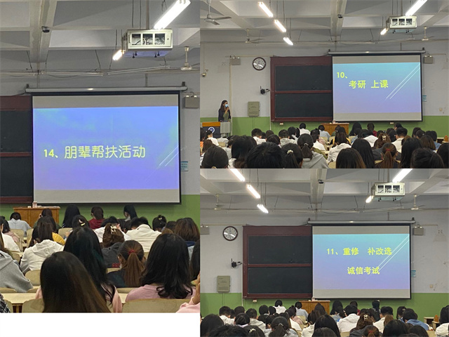 会中,李老师首先向全体学生宣读了2021年度我院学风建设先进班级和优秀学生干部名单,并祝贺药学2001班被评为校级学风建设先进班级。随后,李老师简要的将先进班级和优秀学生干部的先进事迹向同学们做了论述,并要求各班级以先进班级为榜样,取长补短,加强学风建设,争取在2022年度,专业里能有更多的班级和同学获此殊荣。最后,李老师就同学们关注关心的考研和专业开展的朋辈帮扶活动进行了答疑说明。另外李老师还着重强调了一颗红心两手准备,学习之余也要积极参加学校学院的各项活动,全面锻炼,不断提升个人综合能力。