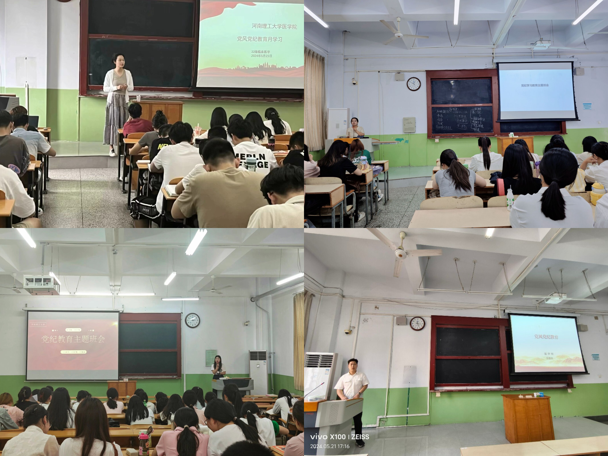 为深入学习贯彻修订后的《中国共产党纪律处分条例》,坚持以习近平新时代中国特色社会主义思想为指导,进一步强化纪律意识、加强自我约束、提高免疫能力,增强政治定力、纪律定力、道德定力、抵腐定力,确保医学院师生始终做到忠诚干净担当,增强纪律意识、提高党性修养,医学院专职辅导员于2024年5月陆续开展党风党纪教育月主题班会。