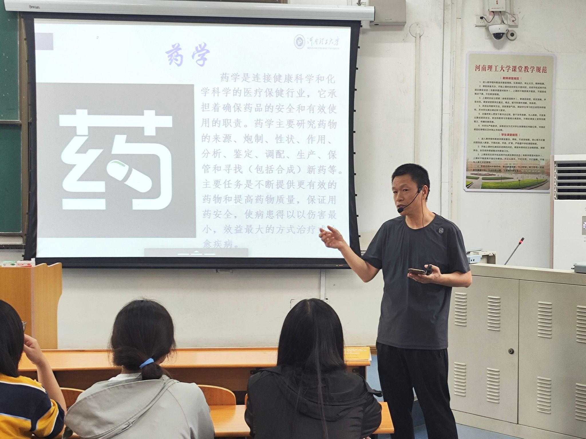 首先,孔继川询问大家来焦、来校情况,关切目前有无生活困难,拉近与新生之间的距离。逐步介绍医学院情况、师资结构,着重强调药学系有着一支素质过硬、专业过精的教学力量,同时设有企业兼职老师来校授课,拓宽专业学习内容其次,孔继川从培养目标、专业前景、课程体系、就业情况、学生竞赛等多个角度展开讲解。介绍药学专业本科阶段要学习的内容和要瞄准的目标,引导新生更深入地了解自己所学专业的课程设置、发展及就业前景等情况,适应全新学习生活,顺利完成专科与本科内容的转换,找准未来努力的方向。