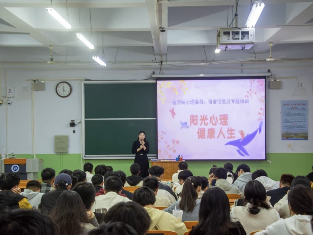 心理委员和宿舍信息员作为基层班干部,是学生群体中至关重要的信息传递员,要不断提高自身的危机事件处理能力,尤其对出现高危倾向苗头的学生,要及时给予帮助,并做到与辅导员进行密切沟通、如实汇报。医学院高度重视基层心理委员、宿舍信息员队伍的工作水平和心理健康素质,今后将不断创新心理健康教育教学形式,组织开展有益于大学生身心健康的文体活动,加强心理健康知识的宣传和普及,更好地满足学生对心理健康教育需要,维护校园的和谐稳定。