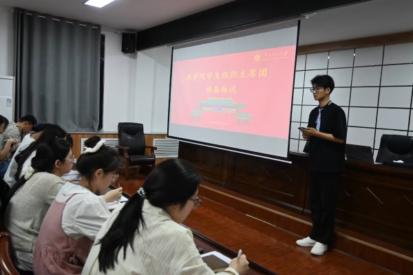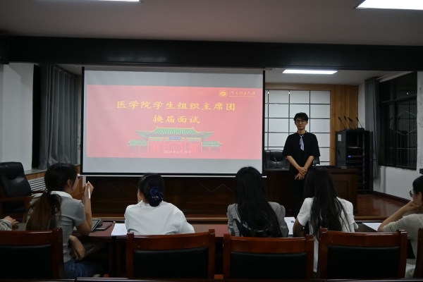 4月29日,医学院2025届学生组织主席团换届竞聘会在院楼317会议室举行。经自主报名与资格审核,10余名优秀学生骨干参与竞聘,接受来自院学生会、青年志愿者协会、宣传中心及团委主席团成员的联合评审,共同为学院学生工作注入新动能。