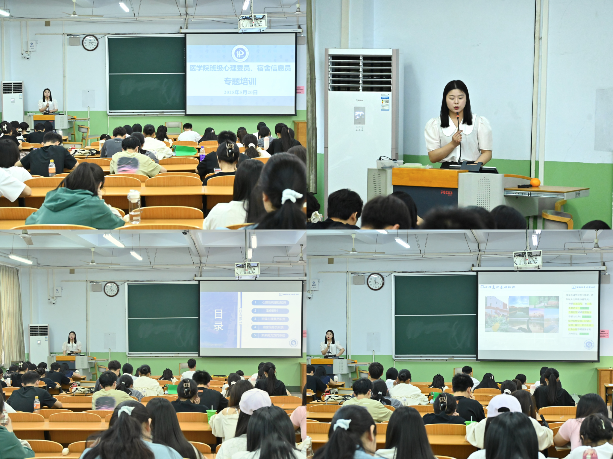 为充分发挥学生班级心理委员和宿舍信息员的积极作用,完善四级心理健康教育工作网络,不断提升育心能力和质量,根据《河南省教育厅办公室转发教育部办公厅关于开展第2个全国学生心理健康宣传教育月活动的通知》(教体卫艺函〔2025〕207号)要求,结合工作实际,医学院于5月20日开展班级心理委员、宿舍信息员专题培训活动,医学院全体心理委员及宿舍信息员参会。