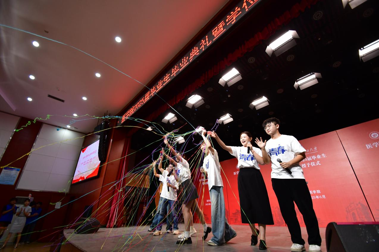 此去长携书剑志,青山踏遍续春晖。从初遇时的憧憬,到毕业时的坚定,医学院见证了同学们的蜕变。这场毕业典礼,是青春的句点,更是新章的序页。愿2025届毕业生们,带着母校的关怀与嘱托,以医者之姿,奔赴山海,在守护健康的路上,书写属于自己的华彩篇章,母校会永远矗立成你们身后的港湾,盼归帆载梦而来,候佳音绕梁回荡!