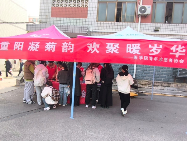 2025年10月27日,医学院青年志愿协会在北校区学林餐厅门口举办“重阳凝菊韵,欢聚暖岁华”重阳节主题活动。活动以传统节日为载体,将节日文化元素融入互动体验,为校园注入温情活力,更以青春之力传承孝亲美德,深化青年学子的文化认同与使命担当。