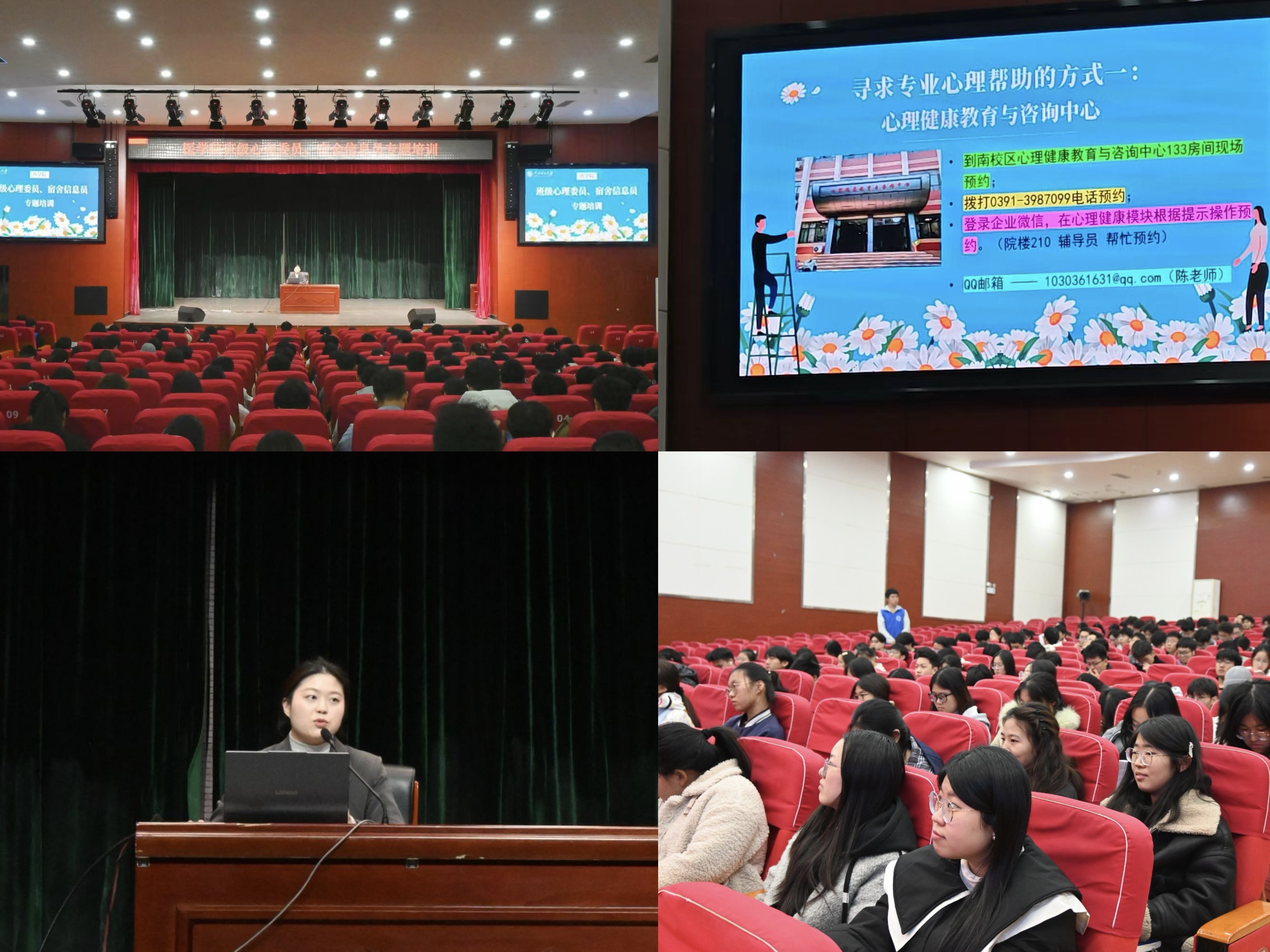本次培训紧密结合心理健康工作实际,聚焦基层心理服务的核心需求,设置了丰富多元的培训内容,主要从心理健康的标准,心理危机人群的画像,班级心理委员、宿舍信息员的日常工作职责,心理咨询方式及求助渠道几方面展开。通过培训,教育引导班级心理委员及宿舍信息员用学到的方法主动关心身边人,做同学身边的暖心人,做老师身边的连心桥,做校园稳定的排头兵。