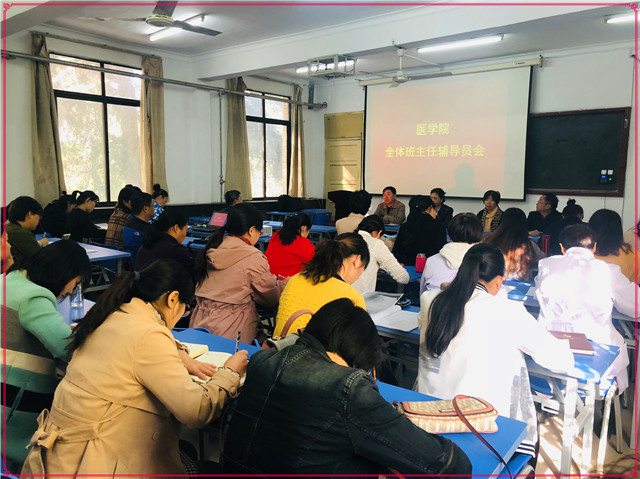 2018年10月23日下午,在学院218会议室召开全体辅导员班主任会。会议由学院书记时洋主持,医学院全体辅导员班主任参加。