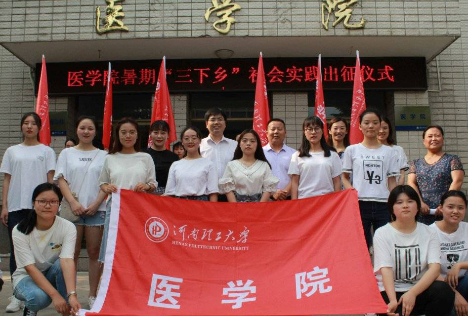 7月11日下午,河南理工大学医学院2019年暑期大学生“三下乡”社会实践出征仪式在学院办公楼前举行。院党委书记余本胜、副书记杜小保出席仪式,五支实践团队的指导老师和学生共70多人参加仪式。