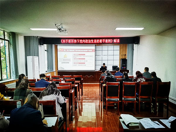 为进一步贯彻十九大精神,时刻用习近平新时代中国特色社会主义思想武装头脑、指导实践、推动工作。11月5日下午,医学院邀请校宣讲团专家陈留根副教授在医学院三楼会议室做《关于新形势下党内政治生活的若干准则》解读的专题报告。院领导班子,科室、系部负责人及全体教师参加了此次会议,学院副书记杜小保主持会议。