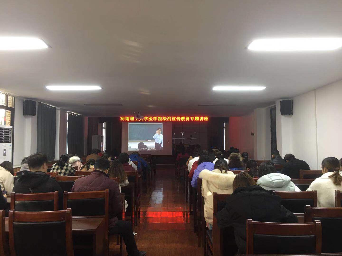 为进一步提升广大师生的法治意识和法治素养,深入开展法治宣传教育,12月3日下午,医学院在三楼会议室举行法治宣传教育专题讲座,此次讲座充分发挥学习强国平台优质资源优势,组织全体教职工和部分学生代表观看国家级精品视频公开课——《法律与现代生活》第三讲《宪法》与公民生活。讲座由副院长王振辉主持。