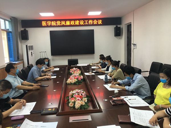 5月26日下午,医学院在223会议室召开党风廉政建设工作会议,传达河南省教育系统和学校全面从严治党会议精神,并对2020年党风廉政建设工作进行了安排部署。院领导、科级干部、系(中心)主任和支部书记参加了此次会议,会议由党委书记余本胜主持。