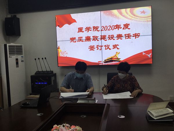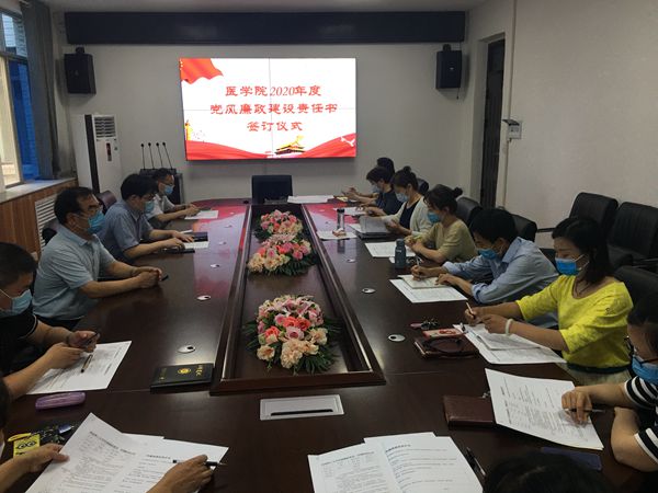 会后余本胜和与会人员进行了任期集体约谈,学院领导与分管科室负责人分别签订了2020年度党风廉政建设责任书。
