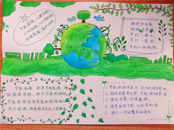 通过“节能减排”手抄报活动,进一步提高了学生们节能意识,特别是让同学们明白了今天的经济能够持续高速地发展和明天更美好的生活,与我们节约能源是分不开的。学校为同学们营造了节约能源、保护环境的良好氛围,全体师生都树立起珍惜每一滴水、每一度电,节约光荣、浪费可耻的观念,养成了对地球资源的积极态度和自觉的环境保护行为。