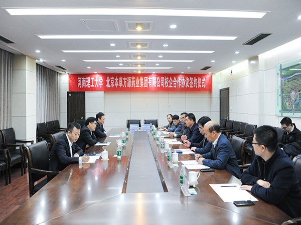 11月2日下午,河南理工大学医学院与北京本草方源药业集团有限公司校企合作签约仪式在行政楼一楼会议室举行。副校长赵俊伟出席签约仪式。中国中医药信息学会中药材及饮片质量分会常务副会长兼秘书长、道地药材分会副会长、中国医药导报副社长张皓臣,北京本草方源药业集团有限公司副总裁王磊,副总经理郑杰;学校科技处、教务处、一附院和医学院相关负责人参加仪式。医学院党委书记余本胜主持签约仪式。
