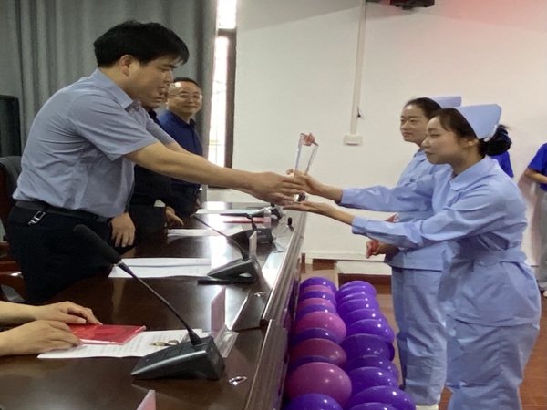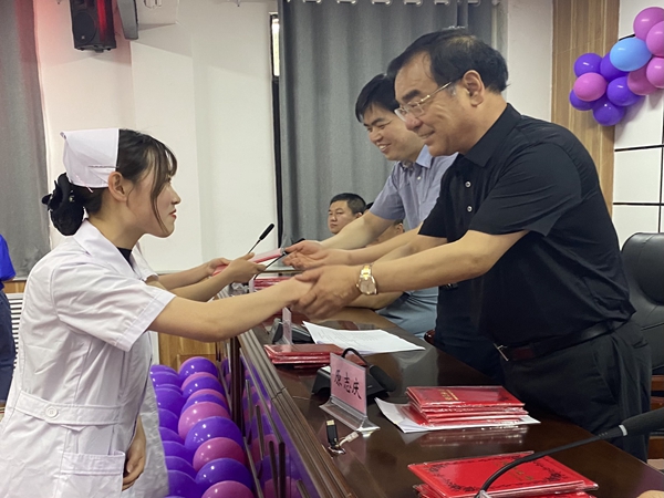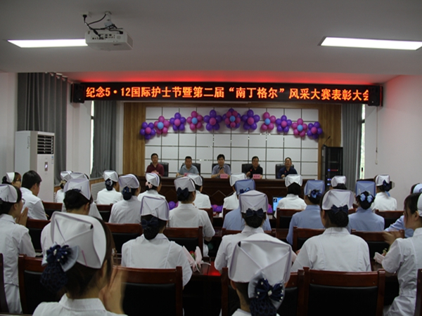 院长原志庆致辞,对获奖同学表示热烈祝贺,向全院护理系师生送上诚挚的节日祝福,党委书记余本胜宣读了表彰文件,随后,医学院领导班子向第二届“南丁格尔”风采大赛的一、二、三等奖获奖选手分别颁发证书和奖牌。