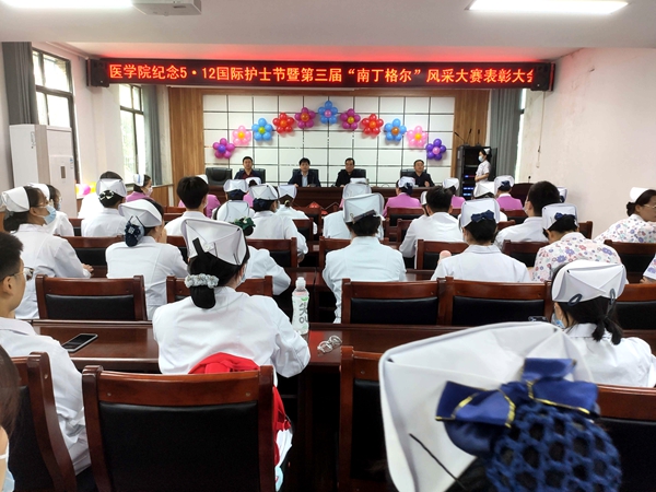 五月花如海,最美护理人。在这个花香四溢的季节,第111个5.12国际护士节又悄然而至,为弘扬“南丁格尔”精神,传承护理文化,医学院于2022年5月10日下午,在医学院会议室举办了纪念5.12国际护士节暨第三届“南丁格尔”风采大赛表彰大会。大会由副院长沈军生主持,院党委书记余本胜、院长原志庆、副院长王振辉出席了大会,护理系教师、优秀学生代表参加了本次活动。