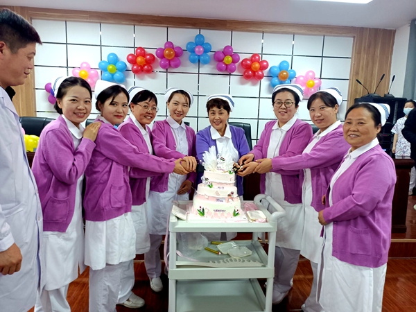 会后,院领导和护理系老师及一等奖选手进行了合影留念,伴随着璀璨的烟花,生日蛋糕被缓缓推上了场,随后,院领导和护理系的教师们切开幸福的节日蛋糕,为师生送上节日祝福。