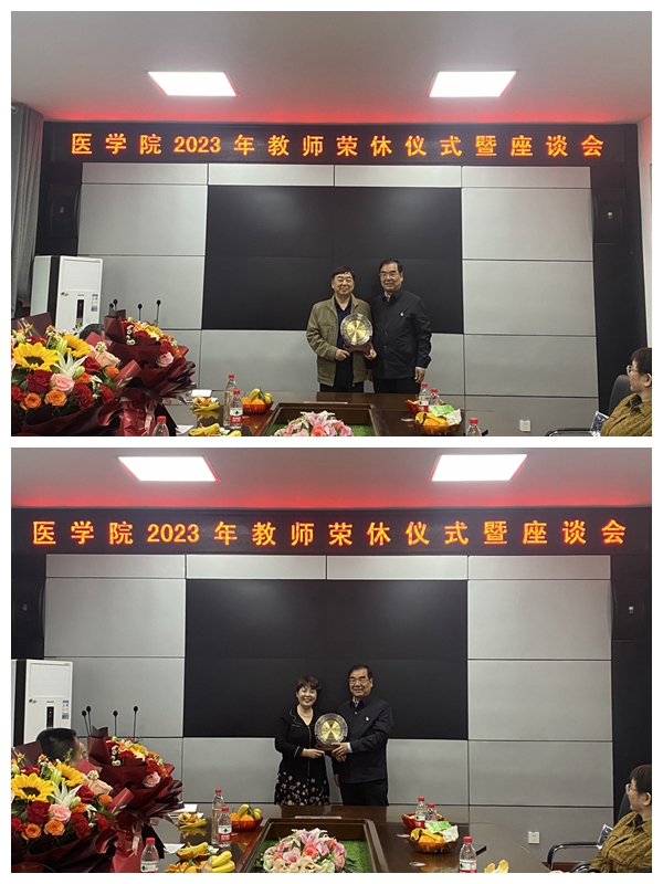 桃李芬芳知雨露,芝兰馥郁续春秋。4月11日下午,医学院2023年教职工荣休仪式暨座谈会在学院楼223会议室举行。时洋、高晓梅两位荣休教师和全体在家学院领导出席,各科室、系部主任和教师代表参加。活动由学院党委副书记杜小保主持。