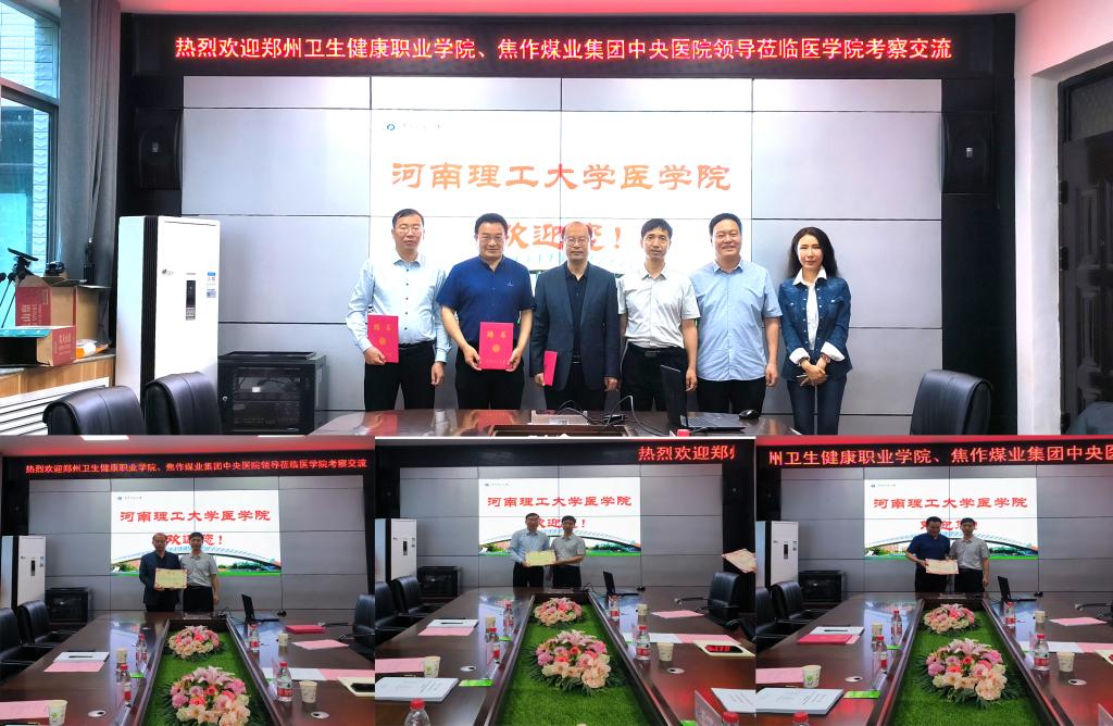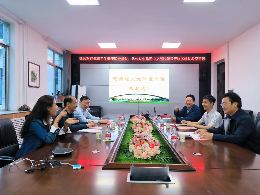 2023年5月27日上午,医学院与郑州卫生健康职业学院、焦作煤业集团中央医院在学院223会议室举行了合作洽谈会。参会人员有郑州卫生健康职业学院党委书记刘畅,工会主席徐玉惠、焦作煤业集团中央医院院长范波胜、河南理工大学医学院党委书记张向锋、河南理工大学骨科研究所所长张雁儒、第一附属医院副院长谢向东。